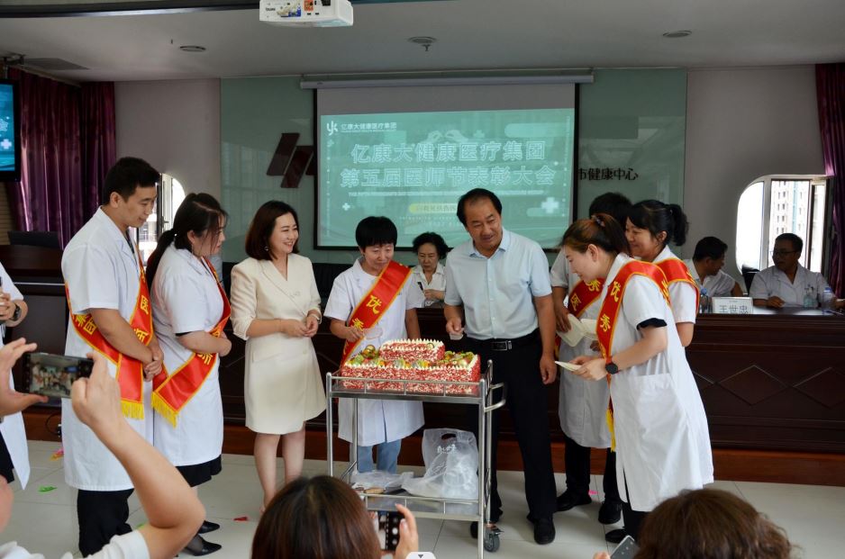 為隆重慶祝第五個(gè)中國醫(yī)師節(jié),弘揚(yáng)醫(yī)務(wù)人員愛崗敬業(yè)、奮發(fā)向上、團(tuán)結(jié)創(chuàng)新的職業(yè)精神,樹立優(yōu)秀典型,營造尊醫(yī)、重醫(yī)的社會(huì)氛圍,更好地為人民健康服務(wù)。8月18日下午,億康大健康醫(yī)療集團(tuán)各醫(yī)療機(jī)構(gòu)開展了第五個(gè)“中國醫(yī)師節(jié)”表彰慶?;顒?dòng)。億康大健康醫(yī)療集團(tuán)董事長王捷、總院長全利軍、執(zhí)行董事全歡歡、黨支部書記王世忠,鄂爾多斯億康醫(yī)學(xué)影像診斷中心主任賀詠平,鄂爾多斯中醫(yī)康復(fù)醫(yī)院副院長郝亮、鄂爾多斯市億康醫(yī)學(xué)檢驗(yàn)實(shí)驗(yàn)室主任劉金喜出席會(huì)議,全體醫(yī)師、員工參加會(huì)議。